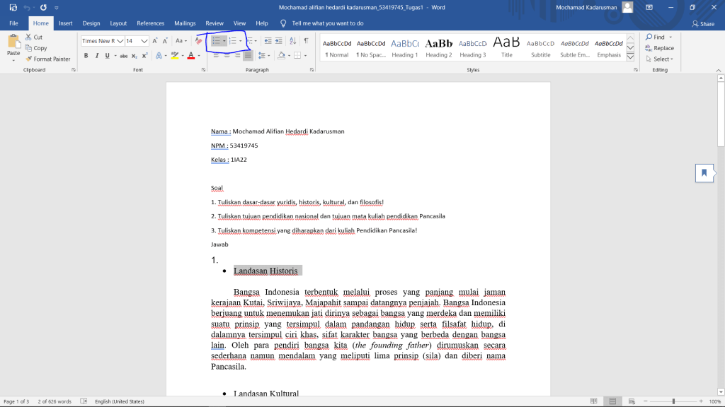 5. Maka akan secara otomatis tampil Bullet atau Number yang diinginkan.