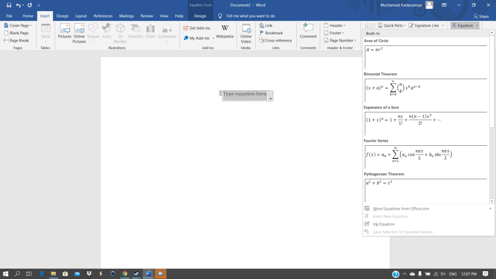-Tekan menu Equation (liat menu bagian atas kanan)