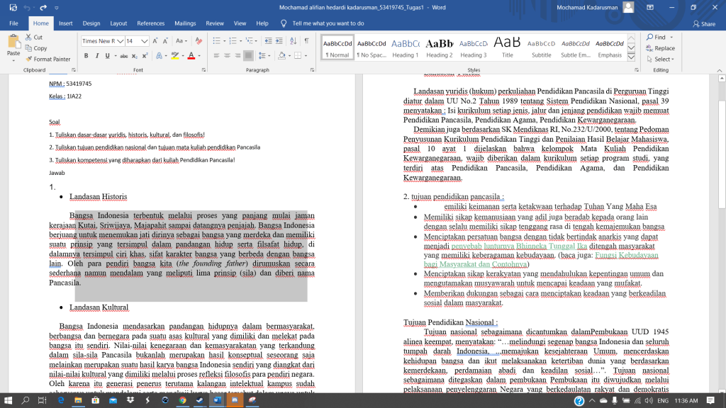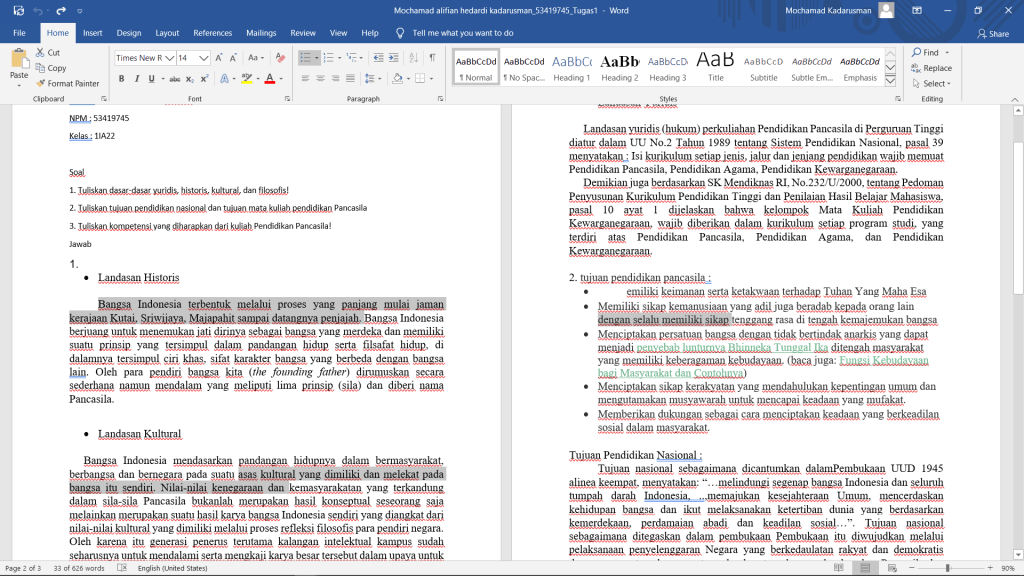 - Word akan menemukan contoh pertama dari teks dan menyorot berwarna abu-abu.