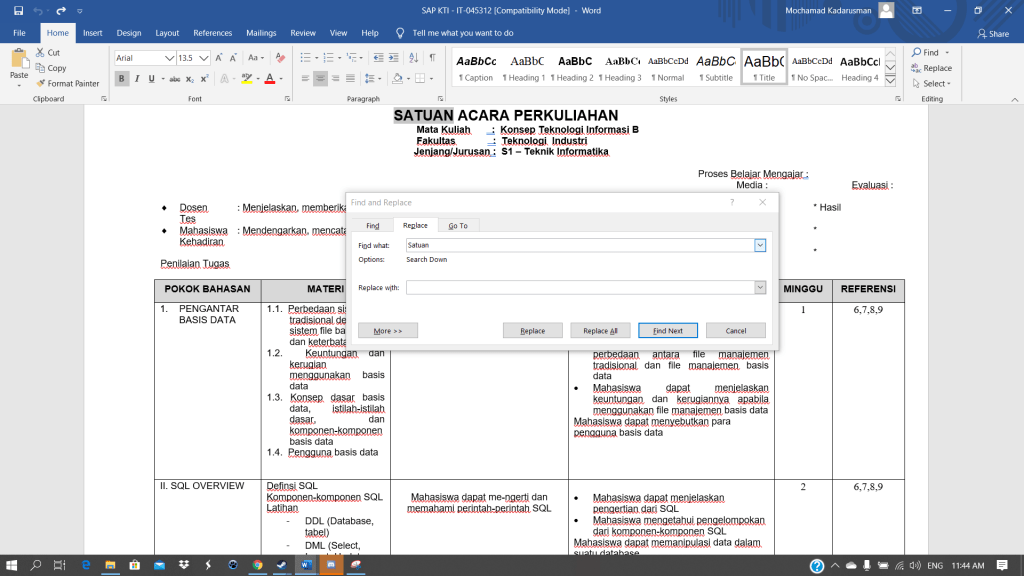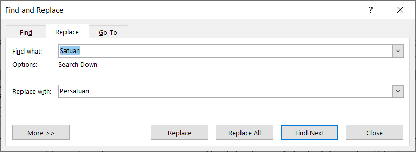 - Jika Kamu ingin menggantinya, Anda dapat klik Replace untuk mengubah setiap teks. Kamu juga dapat mengklik Replace All untuk mengganti setiap hasil penemuan teks di seluruh dokumen.